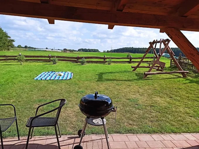 Dla dzieci przygotowano przestronny i dobrze wyposażony plac zabaw z różnorodnymi zabawkami, samochodami i rowerkami, dostosowany do różnych grup wiekowych. Teren obiektu jest ogrodzony, co zapewnia bezpieczne miejsce do swobodnej zabawy. Goście mają również do dyspozycji prywatny parking, taras, ogród z meblami ogrodowymi oraz sprzęt do grillowania.