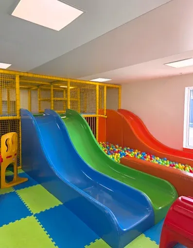 Sala zabaw o powierzchni ponad 1000 m2 z labiryntami, zjeżdżalniami, basenami z kulkami i boiskami sportowymi.