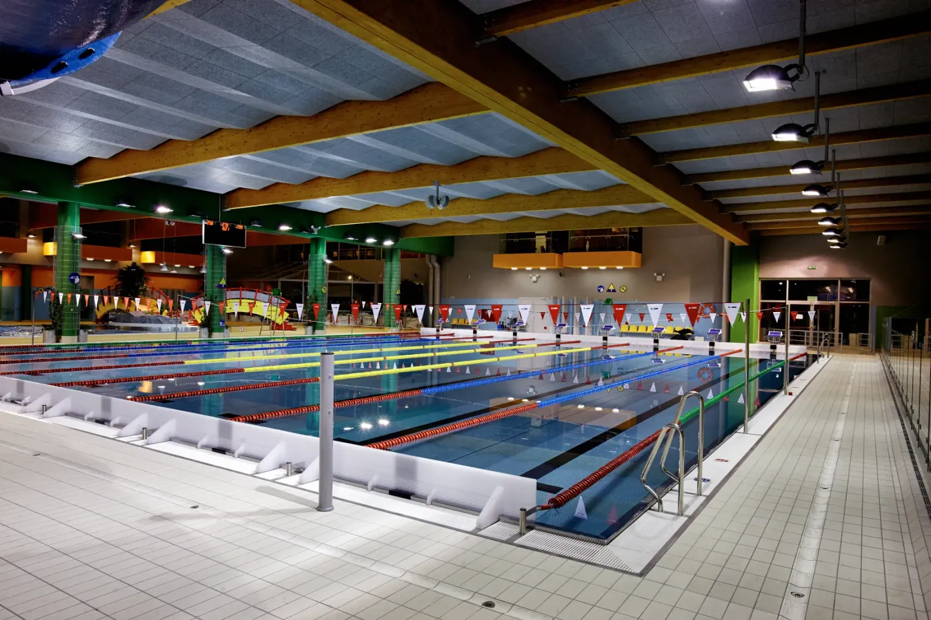 - Basen sportowy o wymiarach 25 x 21 m z ośmioma torami, posiadający homologację Polskiego Związku Pływackiego.