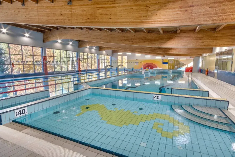 Centrum sportowo-rekreacyjne z aquaparkiem, basenami, zjeżdżalniami, strefą wellness i kortem tenisowym, idealne dla rodzin.
