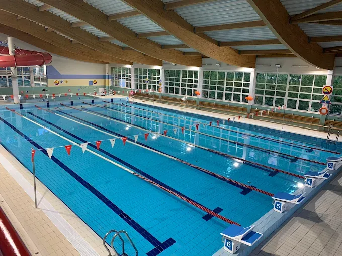 Kryta pływalnia z basenem sportowym, rekreacyjnym, 85-metrową zjeżdżalnią, jacuzzi i atrakcjami wodnymi. Oferuje naukę pływania dla dzieci i dorosłych.