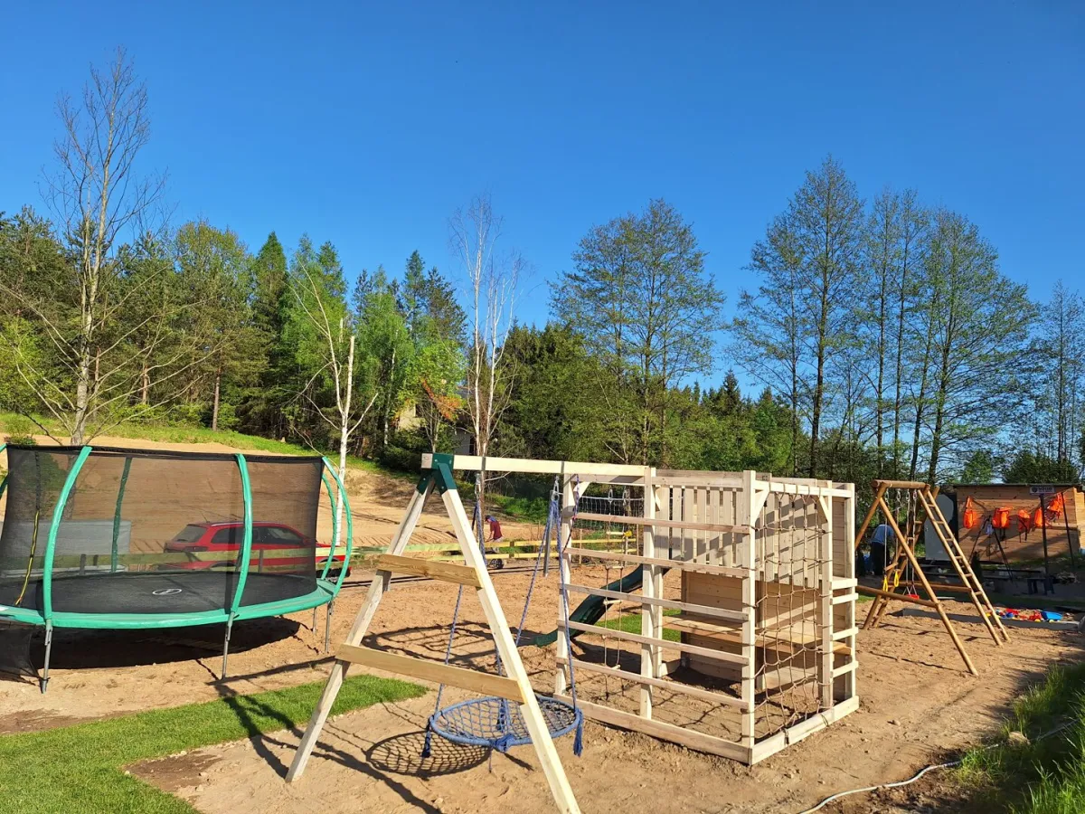 Dla rodzin z dziećmi przygotowano liczne atrakcje na świeżym powietrzu. Na terenie obiektu znajduje się duży plac zabaw z trampoliną oraz różnorodne sprzęty do zabawy. Aktywni goście mogą korzystać z mini boisk do siatkówki, badmintona, kosza do koszykówki i bramki do piłki nożnej. Dodatkowo, bezpłatnie udostępniane są łódki, kajaki i deski SUP, co pozwala na pełne wykorzystanie uroków Jeziora Narie. Możliwe jest także wędkowanie.
