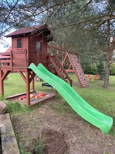 Dla rodzin z dziećmi dostępne są liczne udogodnienia, w tym plac zabaw oraz boisko do siatkówki. Goście mogą aktywnie spędzać czas, korzystając z rowerów, łódki oraz rowerów wodnych, które są wliczone w cenę wynajmu. Okolica sprzyja pieszym wędrówkom oraz wycieczkom rowerowym po malowniczych szlakach.