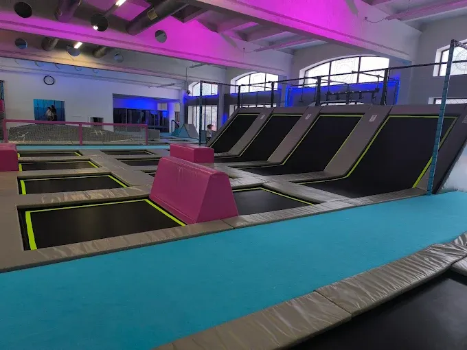 Dla najmłodszych przygotowano strefę Bayby Gym z miękkimi przeszkodami oraz Klockownię, gdzie dzieci mogą bawić się małymi, dużymi i wielkimi klockami. Miłośnicy skakania znajdą tu strefy trampolin rekreacyjnych oraz trampoliny skośne, a także basen z gąbkami, gwarantujące bezpieczną i ekscytującą zabawę. Dostępne są również sportowe ścieżki i sala gimnastyczna, przeznaczone zarówno do treningu wyczynowego, jak i amatorskiego.