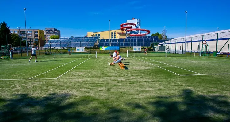 Dwa trawiaste korty tenisowe ze sztuczną nawierzchnią, będące częścią Miejskiego Ośrodka Sportu i Rekreacji w Ełku.