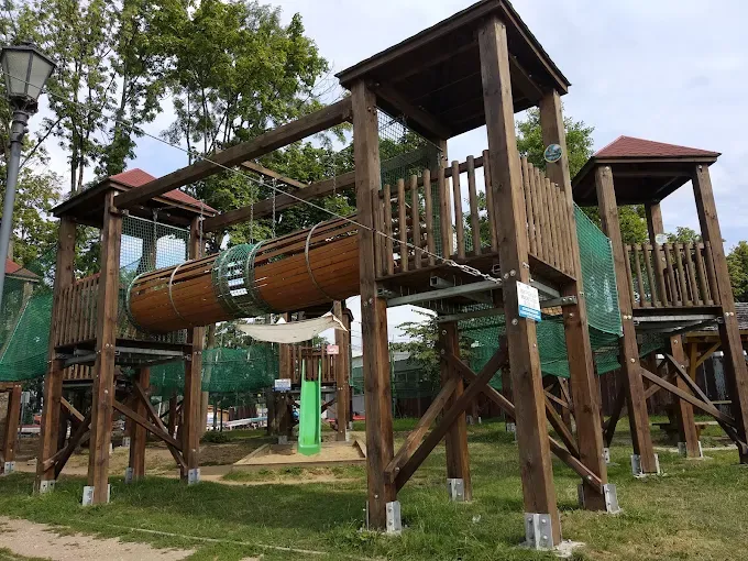 Park linowy w Ełku oferuje trzy trasy o różnym stopniu trudności, w tym jedną dla najmłodszych, położony nad Jeziorem Ełckim.