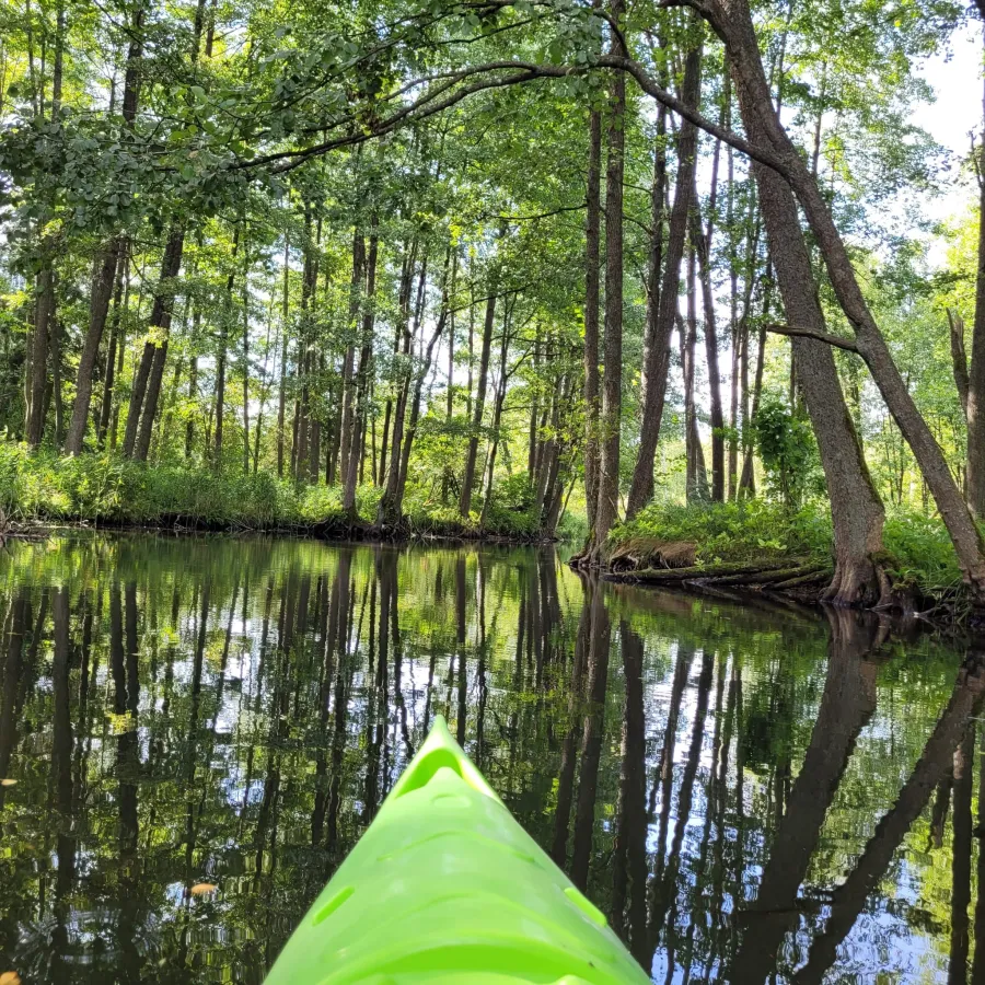 Wypożyczalnia kajaków i organizacja spływów rzekami Sapina i Węgorapa na Mazurach, idealna dla rodzin z dziećmi.