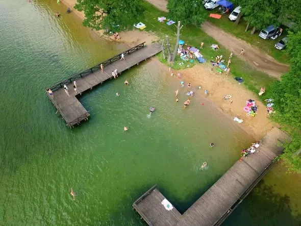 Plaża nad Jeziorem Kownatki z łagodnym zejściem do wody, idealna dla rodzin. Oferuje kąpiele, możliwość biwakowania i sporty wodne.