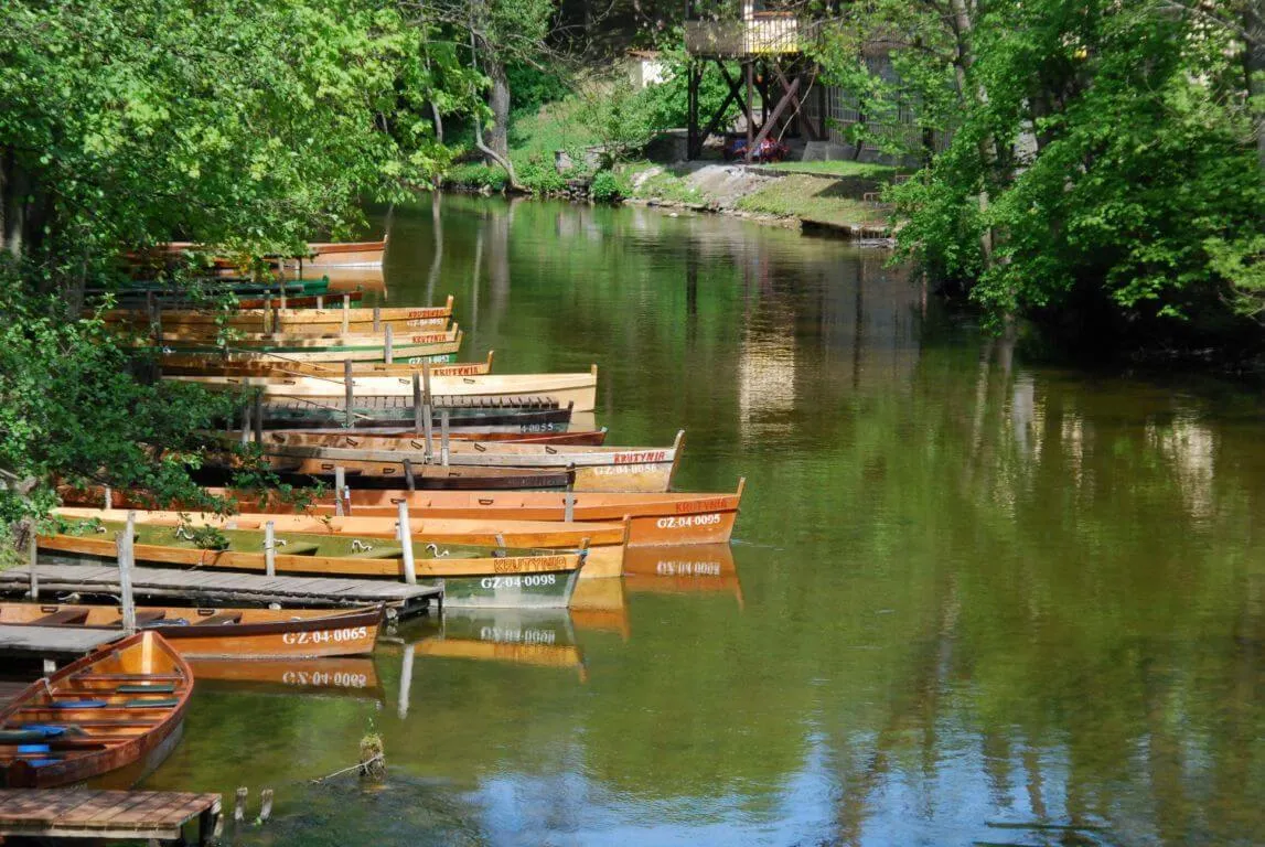 Tradycyjne spływy łodziami pychówkami z flisakiem oraz wynajem kajaków po malowniczej rzece Krutyni, idealne dla rodzin.