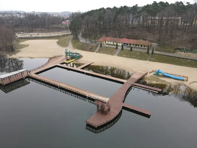 Plaża miejska nad Jeziorem Lidzbarskim z wydzielonymi kąpieliskami, zjeżdżalniami dla dzieci, placem zabaw i wypożyczalnią sprzętu wodnego.