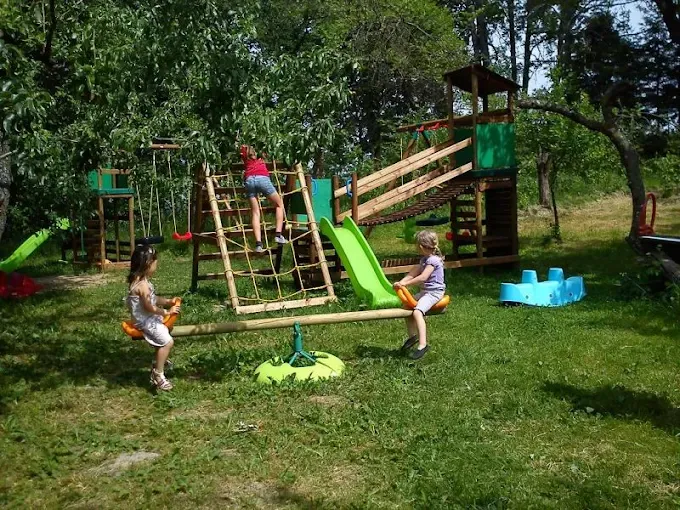 Miejsce jest wyjątkowo przyjazne rodzinom z dziećmi. Na terenie folwarku znajduje się obszerny plac zabaw z huśtawkami, bujakami, zjeżdżalnią i mini-ścianką wspinaczkową. W stodole wydzielono salę zabaw, gdzie najmłodsi znajdą piłkarzyki, stół do ping-ponga, suchy basen z kulkami, gry planszowe, zabawki, klocki i książeczki, co stanowi doskonałą opcję na niepogodę.