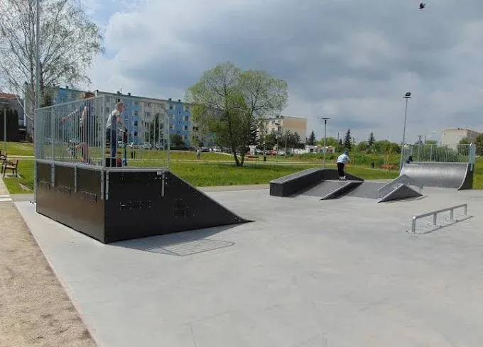 Publiczny skatepark w Morągu, idealny do jazdy na deskorolce, hulajnodze i rolkach.