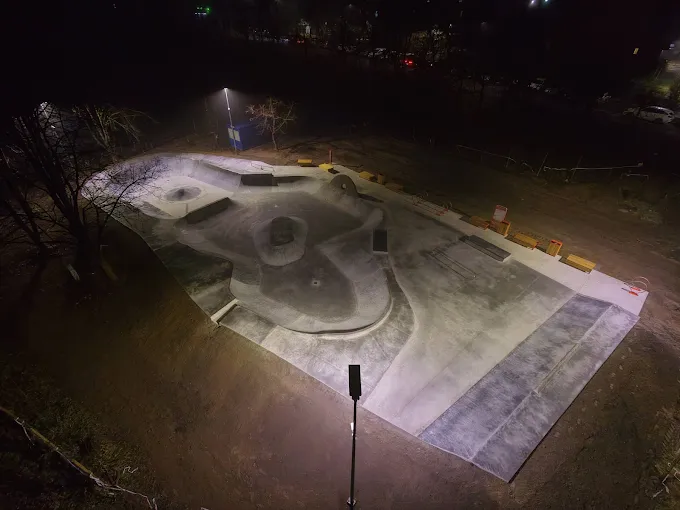 Nowoczesny, betonowy skatepark w Mrągowie, oferujący gładkie nawierzchnie i dobrze wyprofilowane przeszkody dla deskorolek, hulajnóg, rolek i BMX-ów.