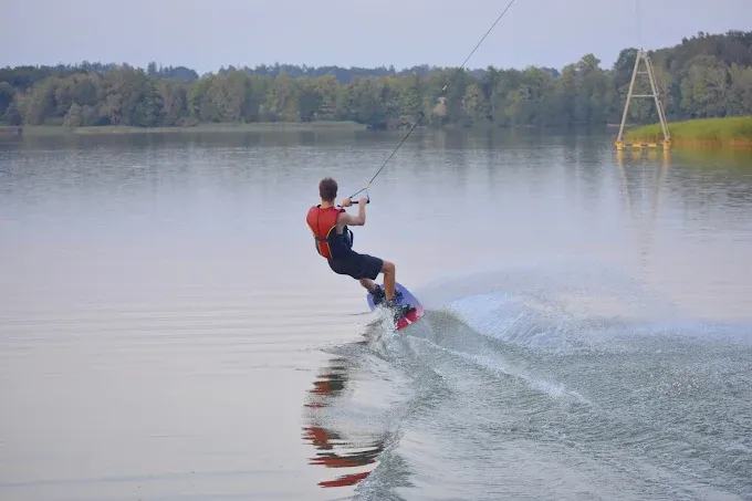 Wakepark Mrągowo oferuje wakeboarding z wyciągiem rewersowym na jeziorze Juno. Dostępne są instruktaże i sprzęt dla dzieci i dorosłych.