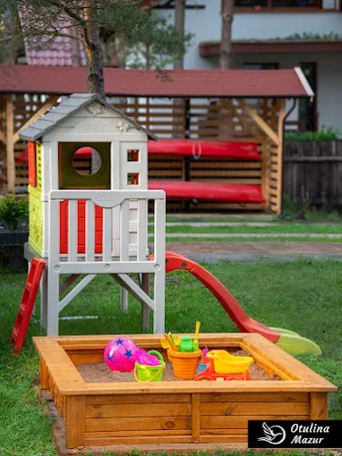 Dla dzieci przygotowano kolorowy plac zabaw. Miłośnicy wodnych przygód mają do dyspozycji kajaki i deskę SUP. Okolica zachęca do aktywnego wypoczynku przez cały rok - od letnich kąpieli w jeziorze i wycieczek rowerowych po zimowe spacery po zaśnieżonych lasach.