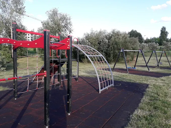 Duży Ogród Jordanowski w Olsztynie z placami zabaw dla różnych grup wiekowych, mini-skateparkiem i boiskiem trawiastym.