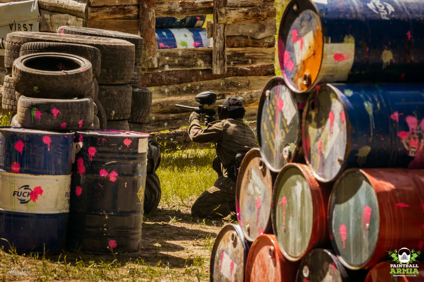 Paintball Armia oferuje dynamiczne rozgrywki paintballowe, które zapewniają dawkę adrenaliny i niezapomniane wrażenia. Pole gry jest strategicznie zaprojektowane z wykorzystaniem naturalnych elementów terenu oraz sztucznych przeszkód, takich jak drewniane bazy, bunkry i sterty gałęzi, co umożliwia realizację różnorodnych scenariuszy taktycznych i strategicznych.