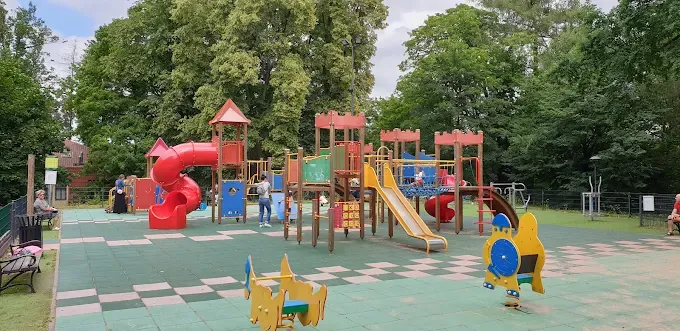 Na terenie obiektu znajdują się dwa zestawy zabawowe - jeden przeznaczony dla młodszych dzieci, a drugi dla starszych, co zapewnia atrakcje dla różnych grup wiekowych. Wśród dostępnych elementów znajdują się liczne zjeżdżalnie, w tym zjazd rurowy, ścianki wspinaczkowe, pomosty oraz wieżyczki widokowe, które rozwijają wyobraźnię i sprawność fizyczną. Cały plac zabaw został wyposażony w bezpieczną, amortyzującą nawierzchnię, co minimalizuje ryzyko urazów podczas intensywnej zabawy.