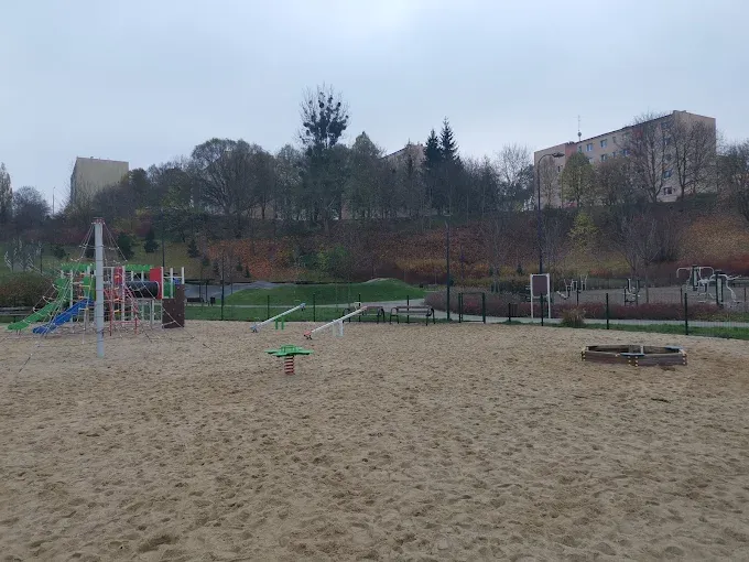 Na terenie placu zabaw znajdują się różnorodne urządzenia, takie jak huśtawki i zjeżdżalnie, zapewniające dzieciom możliwość swobodnej i bezpiecznej zabawy. Park, w którym mieści się plac, oferuje również inne atrakcje, w tym plenerową siłownię, pumptrack oraz tor saneczkowy, co czyni go miejscem sprzyjającym różnym formom aktywności fizycznej.