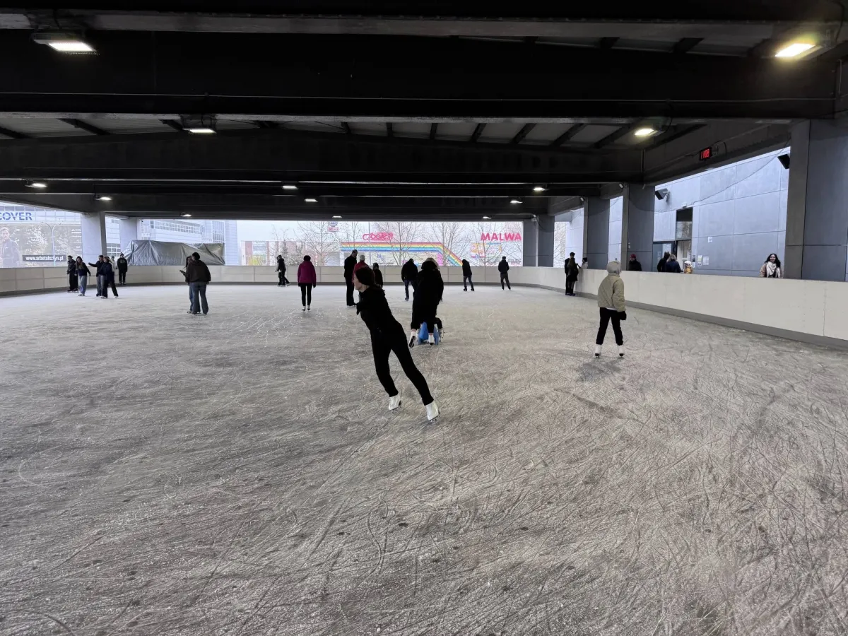 Całoroczne lodowisko i rolkowisko/wrotkowisko w Hali Urania w Olsztynie, oferujące aktywną rozrywkę dla całej rodziny.