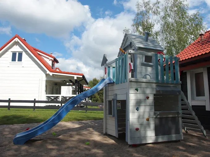 Dla najmłodszych gości przygotowano bogatą ofertę. Na terenie obiektu znajduje się nowoczesny plac zabaw z huśtawkami, zjeżdżalnią i piaskownicą. Dostępny jest również sprzęt sportowy, taki jak rowery (w tym z fotelikami dziecięcymi), hulajnogi, rower wodny, kajaki oraz deski SUP, również w wersji dla dzieci. Dla niemowląt i małych dzieci udostępniane są udogodnienia takie jak foteliki do karmienia, wanienki, łóżeczka oraz bramki zabezpieczające schody, a także klocki i gry planszowe.