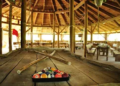 Agroturystyka oferująca noclegi w pokojach i drewnianych domkach w ogrodzie, położona wśród mazurskich jezior i lasów.